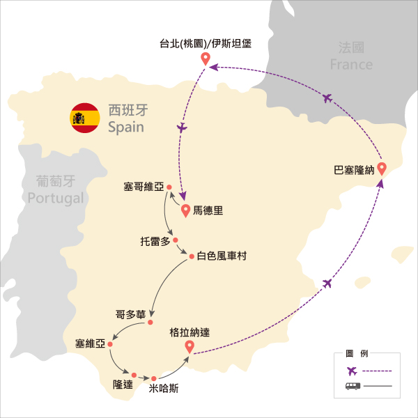 【超值西班牙、中段搭機】佛朗明哥秀、白色山城小鎮、安達魯西亞風情、世界文化遺產11日