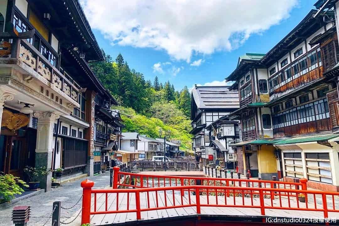 宮城縣鄰接的山形縣尾花澤市內有一座沿著銀山川溪谷的銀山溫泉,銀山川清冽的河水冒著熱氣穿流其中,這裏有成排的3、4層樓木結構的旅館,氣氛寧靜,宛如人間仙境。