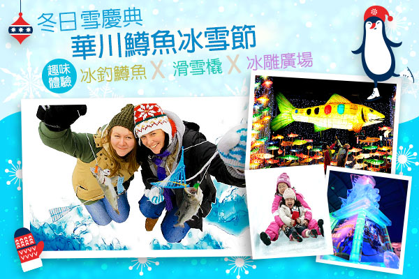 D2:華川鱒魚節慶典(釣鱒魚、烤鱒魚、滑雪橇、全球最大室內冰雕廣場)