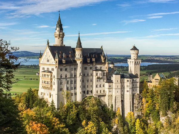 這座19世紀的夢幻建築由路德維希二世下令建造,以中世紀傳說和瓦格納歌劇為靈感。它高踞阿爾卑斯山麓,俯瞰壯麗的風景,仿若童話般迷人。其內部裝飾華麗,包含歌廳與騎士廳等特色空間。新天鵝堡不僅是建築與藝術的瑰寶,也是迪士尼城堡的設計靈感來源。