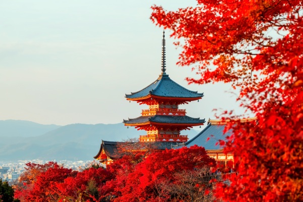 清水寺在11月中旬至下旬迎來滿山楓紅,古寺與朱葉相映,氣氛靜謐而壯麗。