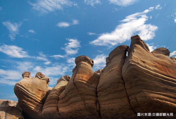 海洋與地殼變動造就瑰麗地景,岩層風化形成各式奇岩怪石,其中以大眼蛙、駱駝石、龜陣岩最為著名。漫步富岡地質公園(小野柳),每一角度都是必拍的自然藝術品。