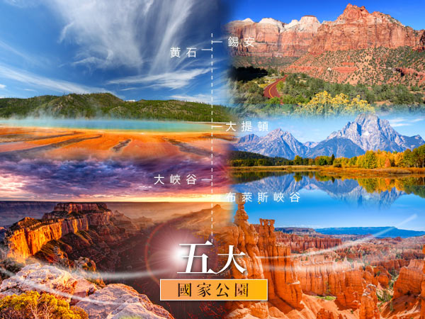 • 五大國家公園:黃石+大堤頓+大峽谷+布萊斯+錫安