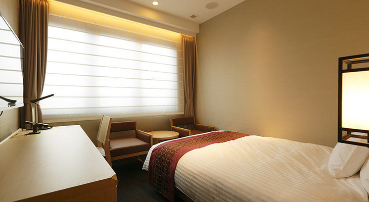 客房結合日式風格與現代化設計,營造出柔和的氛圍。另外,設有男女別浴場,大片玻璃帷幕,使人能邊泡湯邊欣賞庭園景色,相當愜意。距離JR金澤站,步行約15分鐘。
