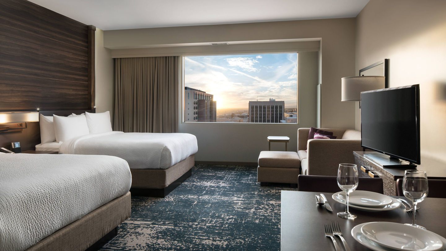 鳳凰城市中心唯一一家長住酒店,時尚的新空間擁有令人印象深刻的套房,靠近CHASE FIELD和COMERICA THEATRE等熱門景點,地理位置便利。享受豪華床上用品帶來的舒適睡眠,然後享用免費自助早餐。套房還提供設備齊全的廚房,免費WI-FI和人體工學工作站。或前往健身中心,使用有氧器材和自由重量鍛煉。