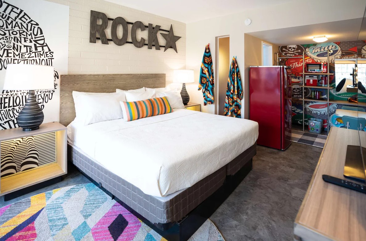 這座建於 50 年代的埃及酒店被《日落》雜誌形容為「復活後成為亞利桑那州最酷的精品酒店之一」。隆重推出具有復古酷炫氛圍的埃及汽車飯店(EGYPTIAN MOTOR HOTEL)、BW SIGNATURE COLLECTION,一定會激發創意人士、美食家和音樂愛好者的靈感,他們喜歡相互聯繫、交流,並讓自己置身於老派原創之中。 THE EGYPT 是鳳凰城市中心全新的精品酒店,擁有49 間復古現代的客房,還有令人驚嘆的銀色子彈氣流、鳳凰城最酷的餐館之一,以及一家供應CHILTE 外帶美食和現場娛樂表演的戶外雞尾酒吧。 飯店的精品客房融合了新舊風格,配有加大雙人床和雙層床、MARSHALL 藍牙揚聲器、全尺寸冰箱和微波爐、復古雙人餐桌、花灑淋浴噴頭和可俯瞰充滿活力的戶外酒吧的露台。 CHILTE 被《BON APÉTITE》雜誌評為“2023 年最受期待的新餐廳之一”,為埃及人帶來了其獨特的烹飪創意品牌。酒店內餐廳被稱為“街頭美食”,將獨立精神與天馬行空的食材融為一體,將客人的美食體驗提升到一個全新的水平——CHILTE 可以在 LIVE 和客房內親自享用,也可以外帶! 位於埃及酒店的戶外雞尾酒吧可容納 250 人,提供各種創意雞尾酒、烈酒、CHILTE 外帶酒,以及在不拘一格的露天氛圍中進行的當地娛樂活動。無論是 DJ 之夜、卡拉 OK、瑣事還是喜劇,埃及人都為客人準備了晚間計劃。 戶外空間還設有綠洲,以及各種類型和技能水平的成人遊戲 - 從亞利桑那州天空下的巨型疊疊樂到嬉水池中的更高級別的足球和潛艇比賽。 埃及汽車酒店 (BW SIGNATURE COLLECTION) 位於 DTPHX 的 GRAND AVENUE 藝術區,周圍遍布藝術商店、畫廊和其他右腦創意場所,距離機場不到 6 英里,距離藝術、自然景觀不到 2 英里和靈感。 埃及現場酒吧可能會有點吵,所以如果您不是夜貓子,房間裡可以提供耳塞。