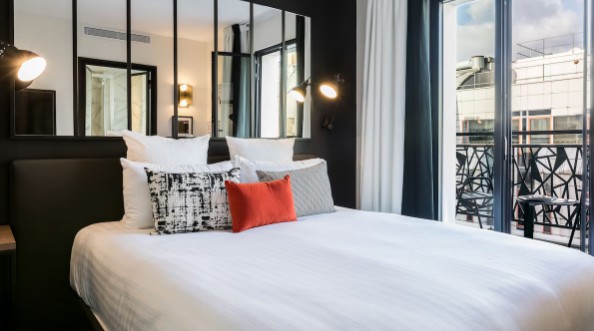 我們的29間套房和公寓位於香榭麗舍大道和星形廣場附近,坐落於巴黎第八區中心一座宏偉的奧斯曼式建築內,誠摯歡迎您的光臨。 您會驚喜地發現,在這巴黎的中心地帶,您竟能享受到我們露台的寧靜祥和。在陽光明媚的日子裡,不妨在戶外享用早餐或一杯香檳。 我們希望您能像巴黎本地居民一樣生活:您既能享受高檔酒店的舒適,又能選擇回到您的巴黎式“繭房”中,自行烹飪簡餐——我們所有的套房都配備了小廚房。盡情享受您心儀的巴黎之旅吧!