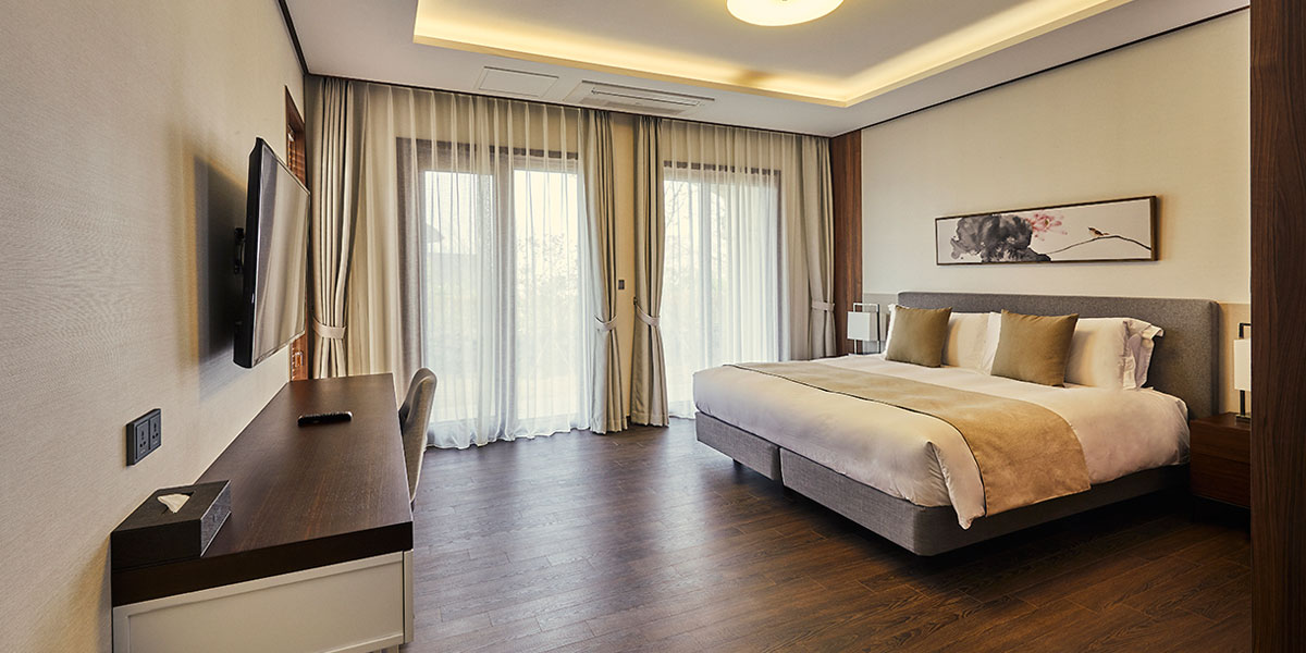 每間空調客房都配有落地窗、平面電視和迷你冰箱。此外,館內還設有餐廳、三溫暖和游泳池等設施。酒店距離翰林公園有8分鐘的車程,距離濟州國際機場約1小時的車程。