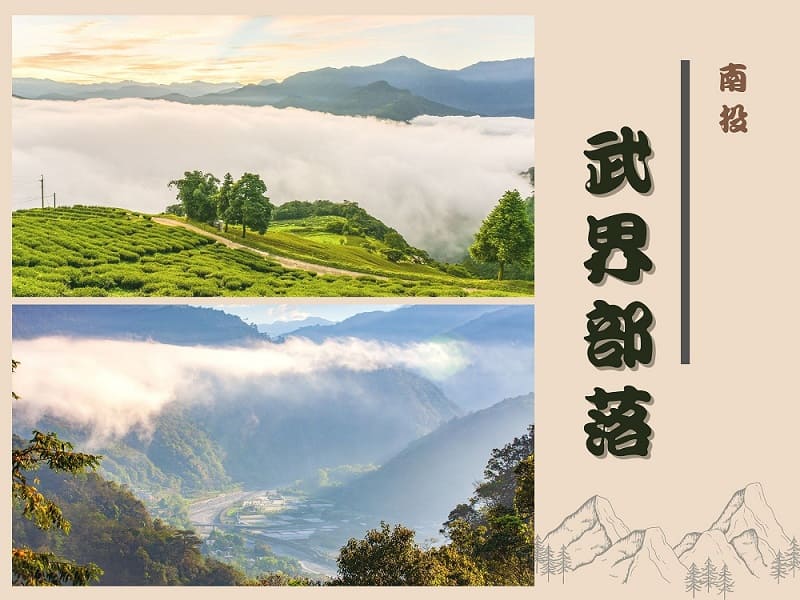武界是南投信義鄉與仁愛鄉的交界處,亦是北邊泰雅族於南邊布農族交戰停火議合之處,並以干卓萬山為界雙方互不越界,因而得名武界。部落裡的悠閒,圖騰很美,增添了武界的部落色彩,茶園.日出.吊橋.水壩.瀑布等您來相遇。雲瀑洶湧的流竄著,雲海瞬間的淹沒整片山間,被稱為「雲的故鄉」。