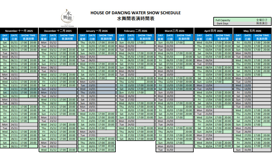 .表演時間:17:00、20:00(表演時間按不同日期安排,請詳閱官網)。