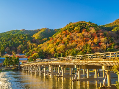 嵐山融合自然景色與歷史文化,是京都人氣旅遊地。可漫步於翠綠竹林小徑、欣賞渡月橋風光,或造訪世界遺產天龍寺。春櫻與秋楓尤為迷人,搭乘嵐山小火車更能感受四季風情。