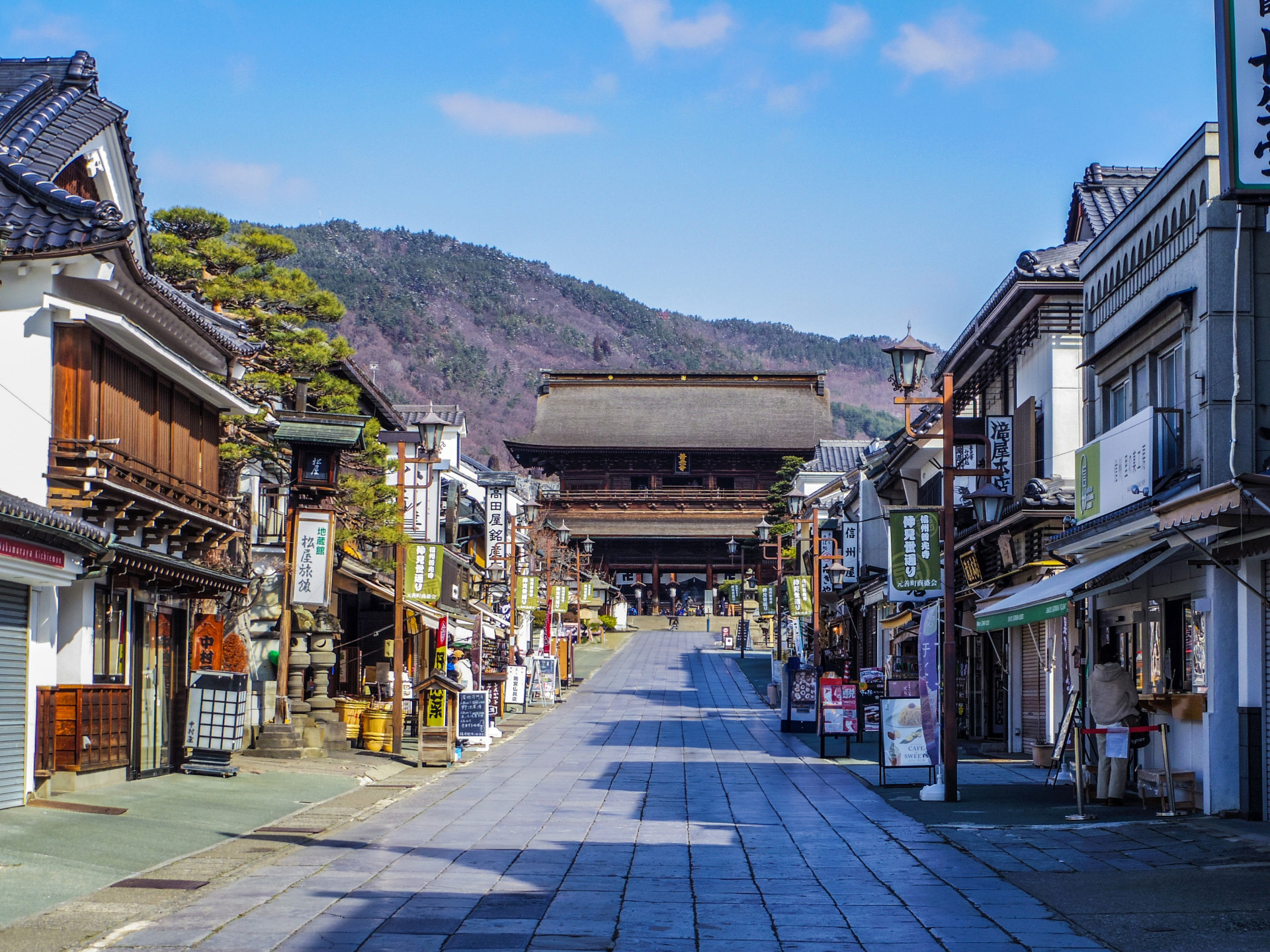 善光寺仲見世通位於長野市,是通往日本名剎「善光寺」的表參道。沿途兩旁林立著充滿古風的木造商店,販售信州特產、手工藝品與各式甜點小吃,如七味粉、蕎麥饅頭、味噌冰淇淋等。漫步其中可感受濃厚的歷史氛圍與庶民風情。無論是參拜前的散步,或邊走邊品嚐美食,都是體驗長野文化的絕佳方式。