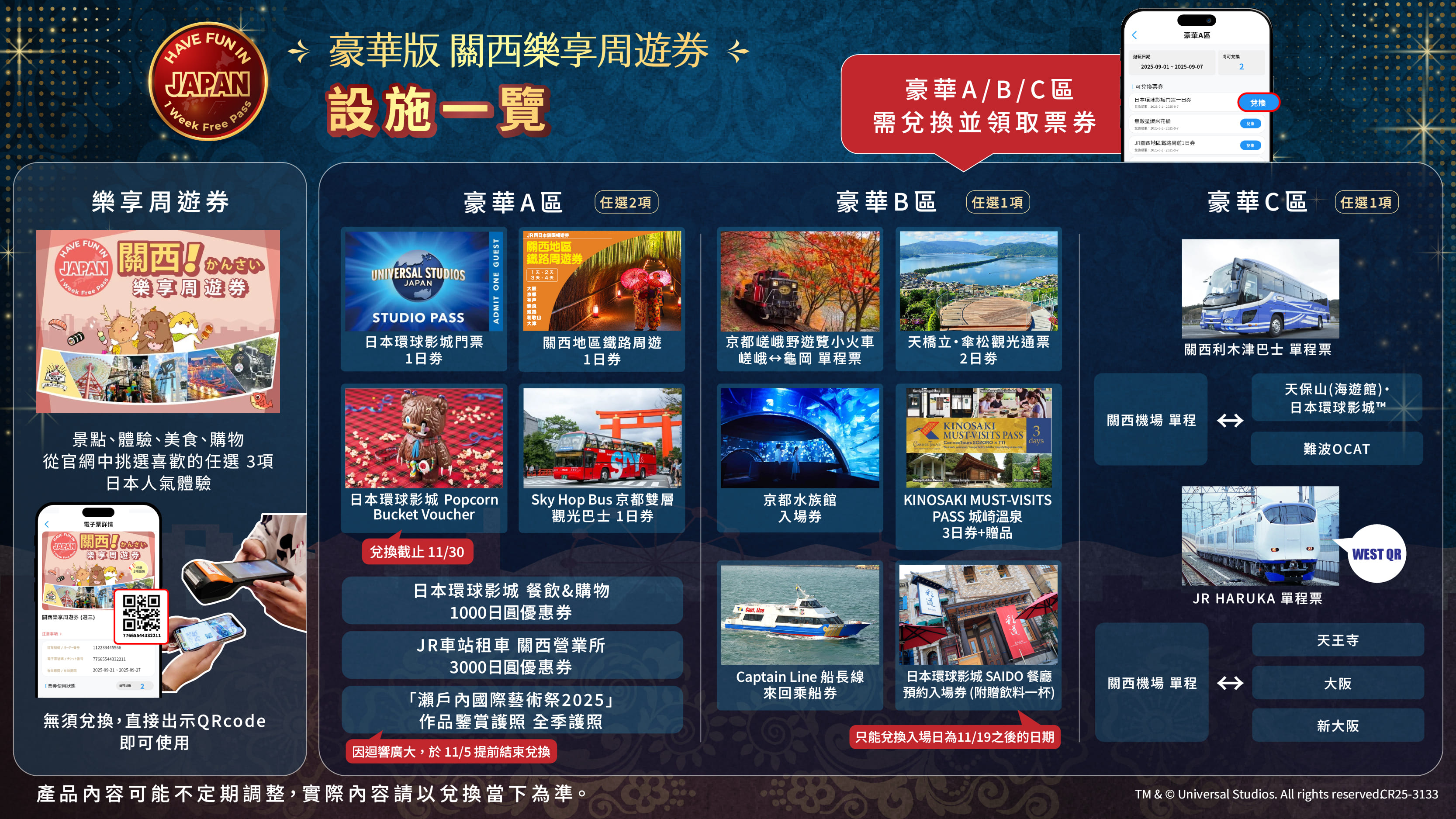 【關西樂享周遊券】 【限時優惠】豪華版:關西樂享周遊券(可選日本環球影城1日券、JR PASS) Have Fun In Kansai