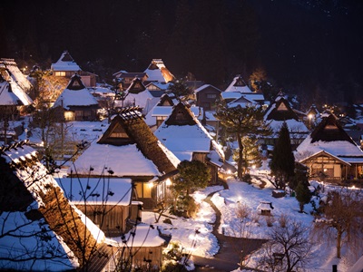 位於京都北部的「美山雪燈廊」是冬季限定的夢幻活動,每年一月下旬至二月初舉行。整個合掌造村落在白雪覆蓋下點亮無數燈光,映照出如童話般的光影世界。夜晚時分,雪屋裡的燭光與古民家屋頂的白雪相互輝映,營造出寧靜又浪漫的氛圍,是冬日必訪的攝影聖地。