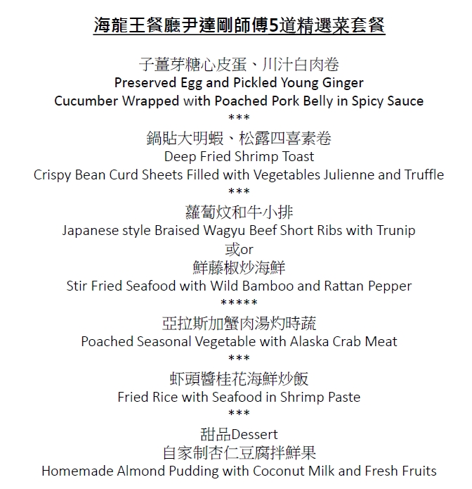 【香港島|香港海洋公園】 海龍王餐廳-尹達剛師傅精選套餐券 Hong Kong Ocean Park