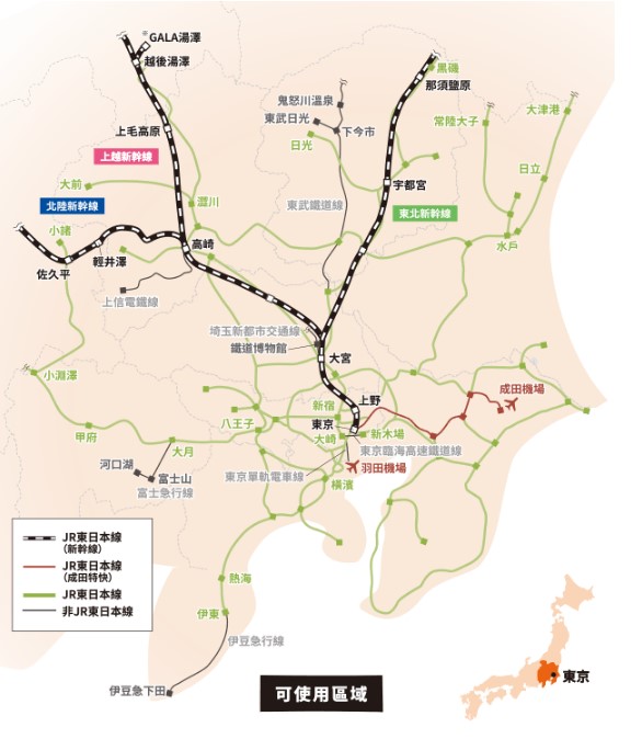 可透過周遊券前往日光、輕井澤、GALA湯澤等地旅行。
