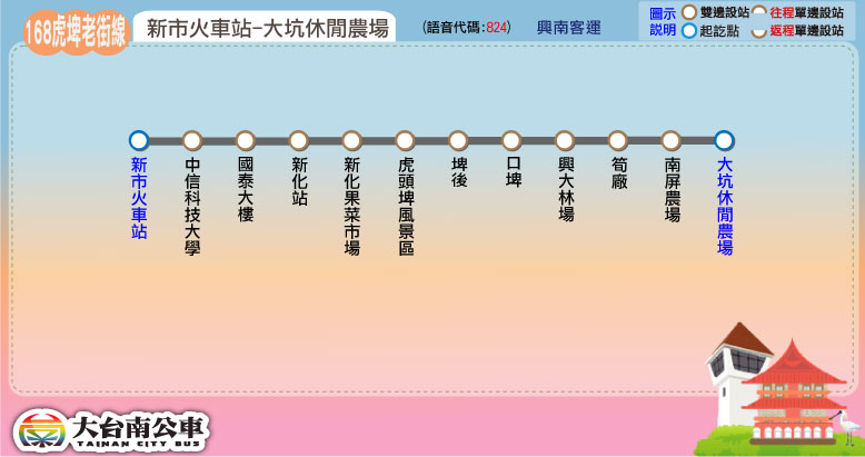 玉井站-玉安街口-玉田里-後旦-竹圍-鹿陶廟-鹿陶-埔頭子-大林路口-鹿陶洋-東西煙-油車-楠西橋-楠西區圖書館-楠西區公所-楠西街-楠西區東勢里-楠西-台電楠西服務所-茄拔路口-揚梅-內埔-關帝廳-香蕉市-中山堂-土地公廟-灣丘-梅嶺資訊站-香蕉山-北勢仔-下井仔湖-上井仔湖-樟湖-二層坪-梅嶺