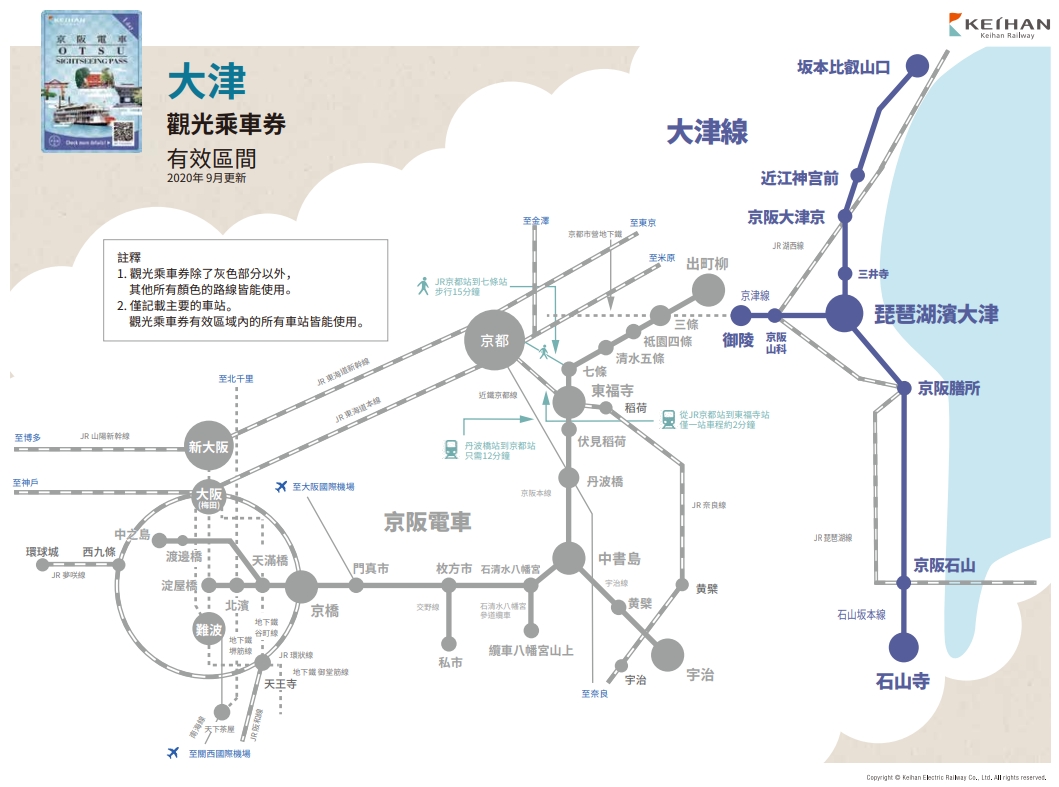 ※此票券無法搭乘:京阪本線,若超過區間,需自行另付車資。