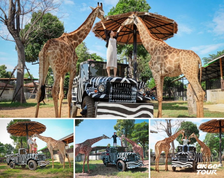 大城府的最新熱門景點,2023年底新加入長頸鹿餵食活動,最火紅!在曼谷附近就能在吉普車上和長頸鹿合照。