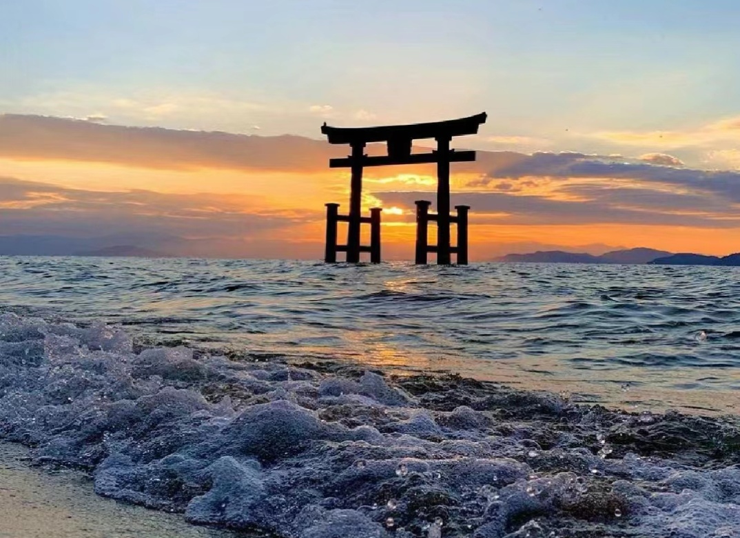 以沖島為背景,如同浮在琵琶湖畔的鳥居,所以也被稱為「近江之嚴島」,莊嚴而又肅靜。