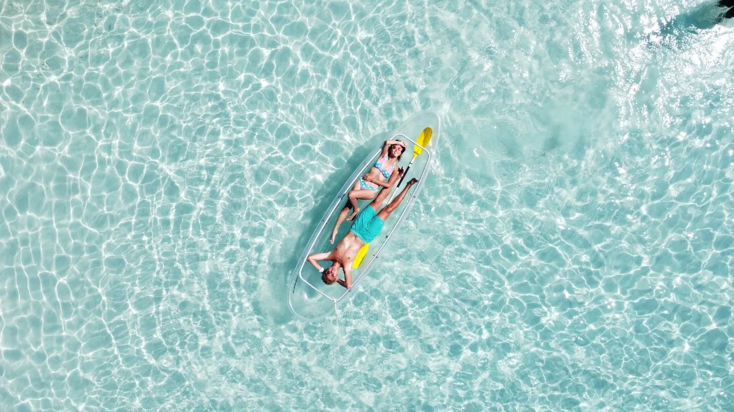 -開始各種水上活動:深海釣魚、透明划艇拍照、水上浮床拍照、KTV、浮潛、拖曳傘(自費)、香蕉船(自費)、海底漫步(自費)