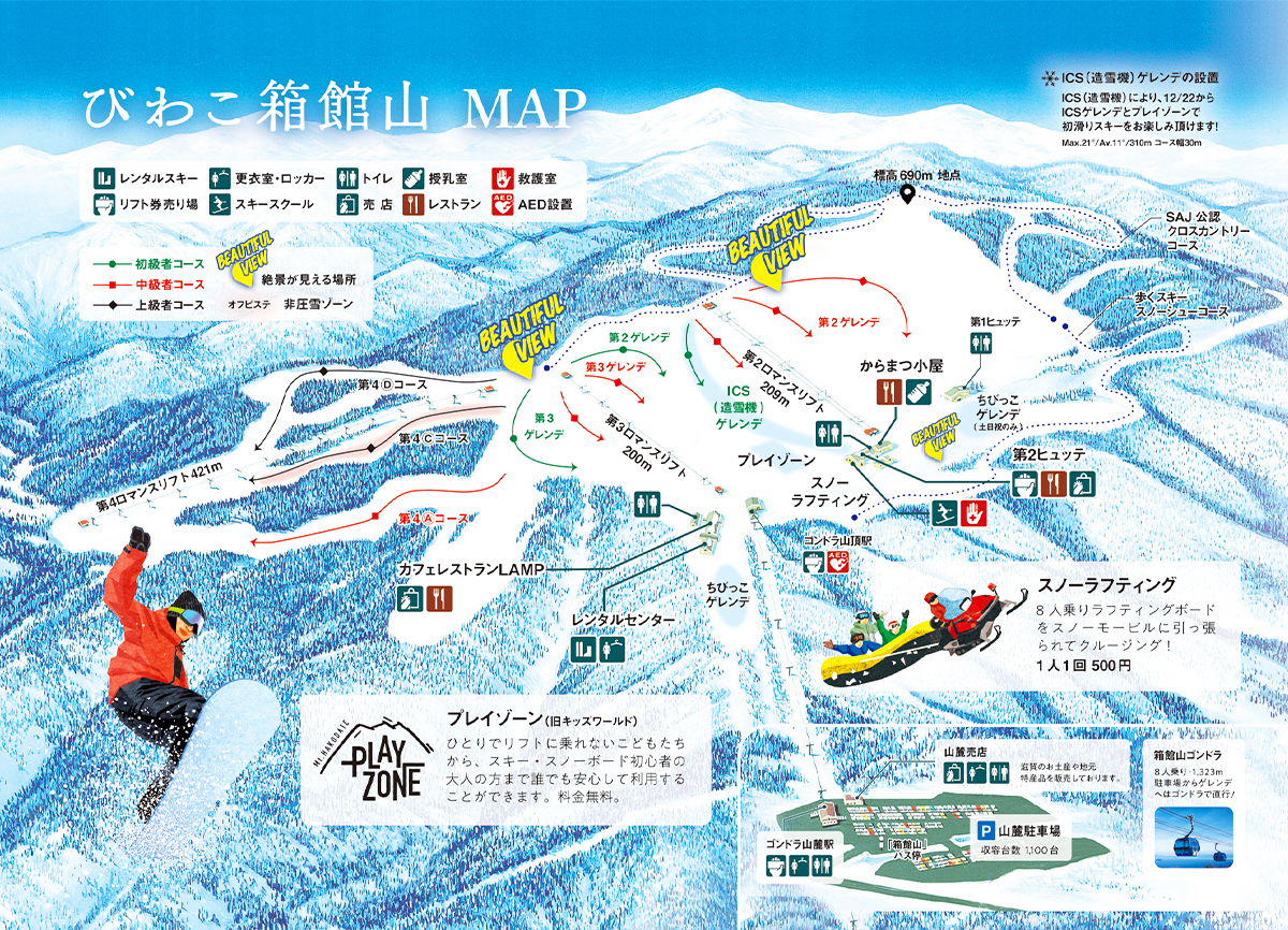 位於滋賀縣的箱館山滑雪場,坐擁琵琶湖美景,是關西地區冬季熱門滑雪景點之一。場內設有多條滑道,適合不同程度的滑雪者,還有雪地樂園供親子同樂。天氣晴朗時,滑雪同時還能遠眺湖光山色,景緻絕美。