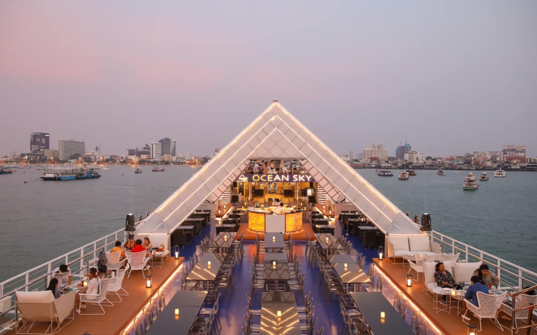 搭乘 Ocean Sky Pattaya 海洋天空郵輪晚宴,享受在泰國芭達雅最美麗的景點,精彩地度過美妙夜晚。這趟獨特的郵輪之旅提供美味自助餐,包含最地道的泰國美食以及多款國際佳餚,等待您來品嚐。