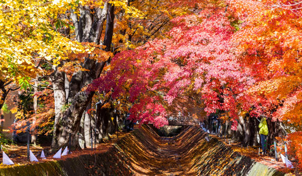 距離東京市區車程約2.5小時的河口湖,除了一年四季都可以欣賞到富士山壯麗的美景之外,秋日紅葉迴廊更是不能錯過的景點,約150公尺的紅葉迴廊種植超過60顆百年楓葉,漫步紅黃交錯的紅葉迴廊超級浪漫。