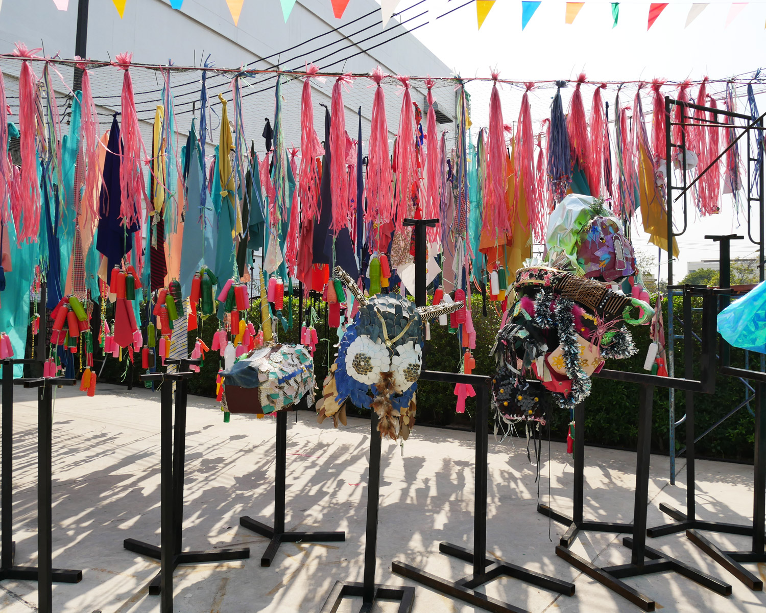 因園區中心停了一架退役的飛機,又稱「飛機夜市」。除了厲害裝置藝術外,還設有旋轉溜滑梯,文化藝廊,多以販售泰國文創商品為主,愛挖寶、拍照的朋友別錯過囉!