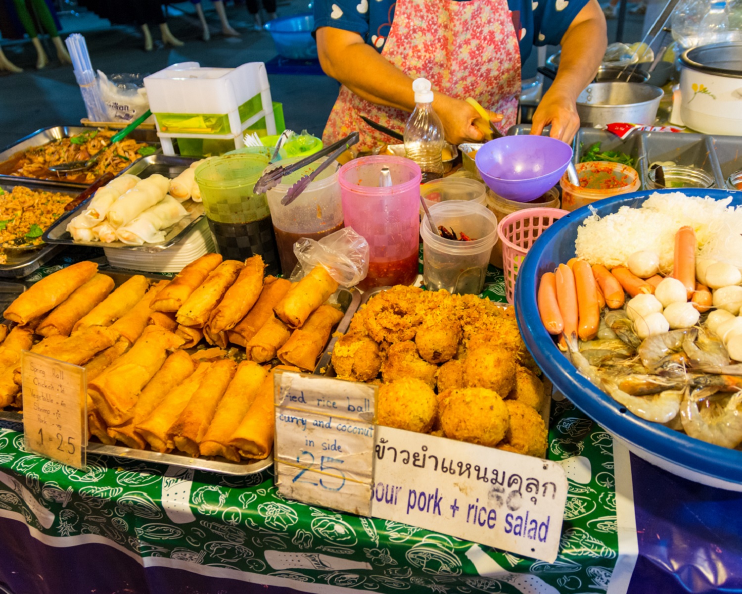 前半段為泰式傳統小吃、南洋風服飾、泰式傢俱等;後半段為海鮮一條街,海鮮迷不要錯過!